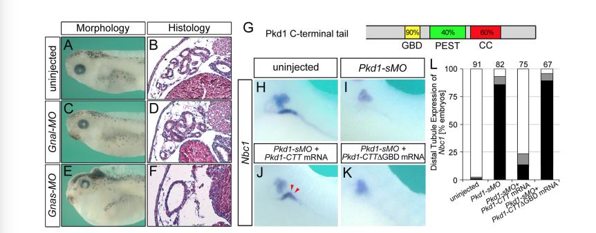 for each domain is indicated. (H-L) Uninjected controls and embryos injected with Pkd1-sMO alone or co-injected with Pkd1-CTT or Pkd1-CTTδGBD mRNA