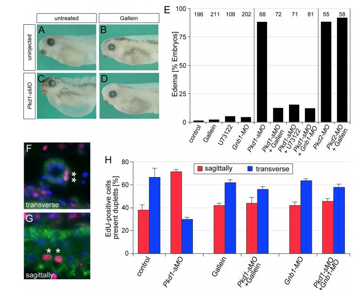 Fig. 5. Loss of polycystin 1 and G-protein β/γ signaling in Xenopus. (A-D) Uninjected controls and embryos injected with Pkd1-sMO in the presence or
