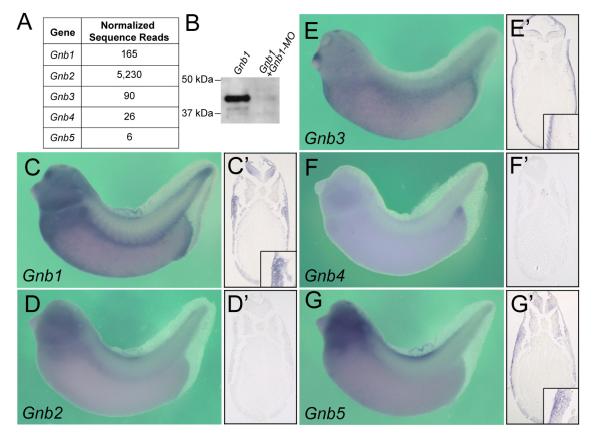 demonstrating the expression of G-protein beta subunits in stage 35 embryos. Insets show