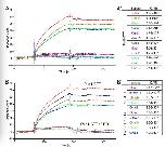 were bound to the streptavidin chip in comparable amounts. (B) Representative sensorgram