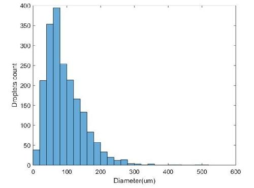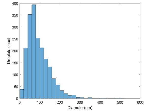 Author response image 4. Size distribution for 1997 droplets obtained using a specific vortexing speed and duration. |