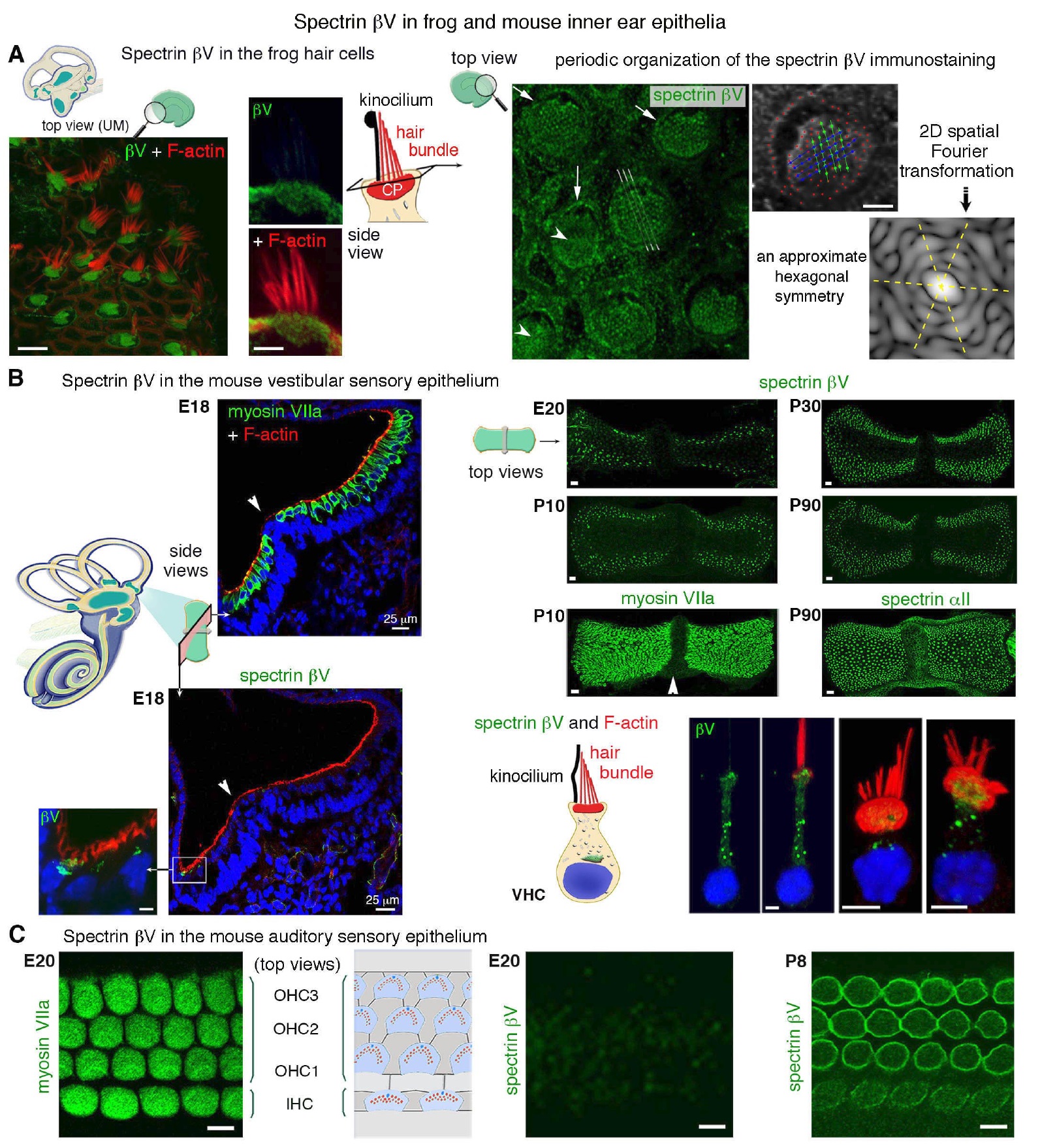 myosin VIIa immunostaining indicates the position of the hair cells. The spectrin βV