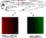 Supplementary Fig. 4. A stage 37â38 X. laevis tadpole with the location of a representative intermyotomal region sampled (red box) with florescent images of Mito-SOX and MitoPY1 oxidation shown below. |