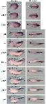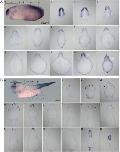 Fig 2. Wnt activity during gastrulation and neurulation in cross-sections. Embryo transverse (or cross-)sections following whole-mount gfp in situ hybridization on Tg(pbin7Lef-dGFP) embryos, from stage 12.5 to stage 20. For each stage, 7 serial sections are shown. White dotted lines delineate the somites. e: nonneural ectoderm; np: neural plate: brackets indicate the approximate width of the neural plate. |