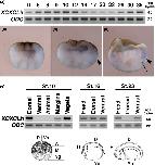 FIGURE 2.âExpression of XCXCLh. (a) Temporal expression of XCXCLh detected by RT- PCR. âUâ indicates unfertilized eggs, and the numbers indicate the developmental stages. Ornithine decarboxylase (ODC) was used as an internal control. (bâd) Whole mount in situ hybridization. Fixed embryos were bisected. Dorsal side is on the right side of the figure. Arrowheads indicate the XCXCLh signals. The arrow indicates the blastopore lip. (b) 32- cell stage. (c) Stage 8 embryo. (d) Stage 10 embryo. (e) Spatial expression patterns of XCXCLh detected by RT- PCR. Embryos were dissected at the indicated stages, and dissections were performed as indicated by the bottom panels |