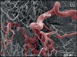 Figure 11. Branching pattern of the preoptic artery (poa) within the subependymal zone of the preoptic area. Note the branches directed anteriorly, laterally, and caudally. Anterior is to the left |