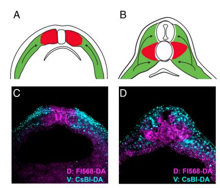 dorsal cells (in red), and during development is surrounded by converging