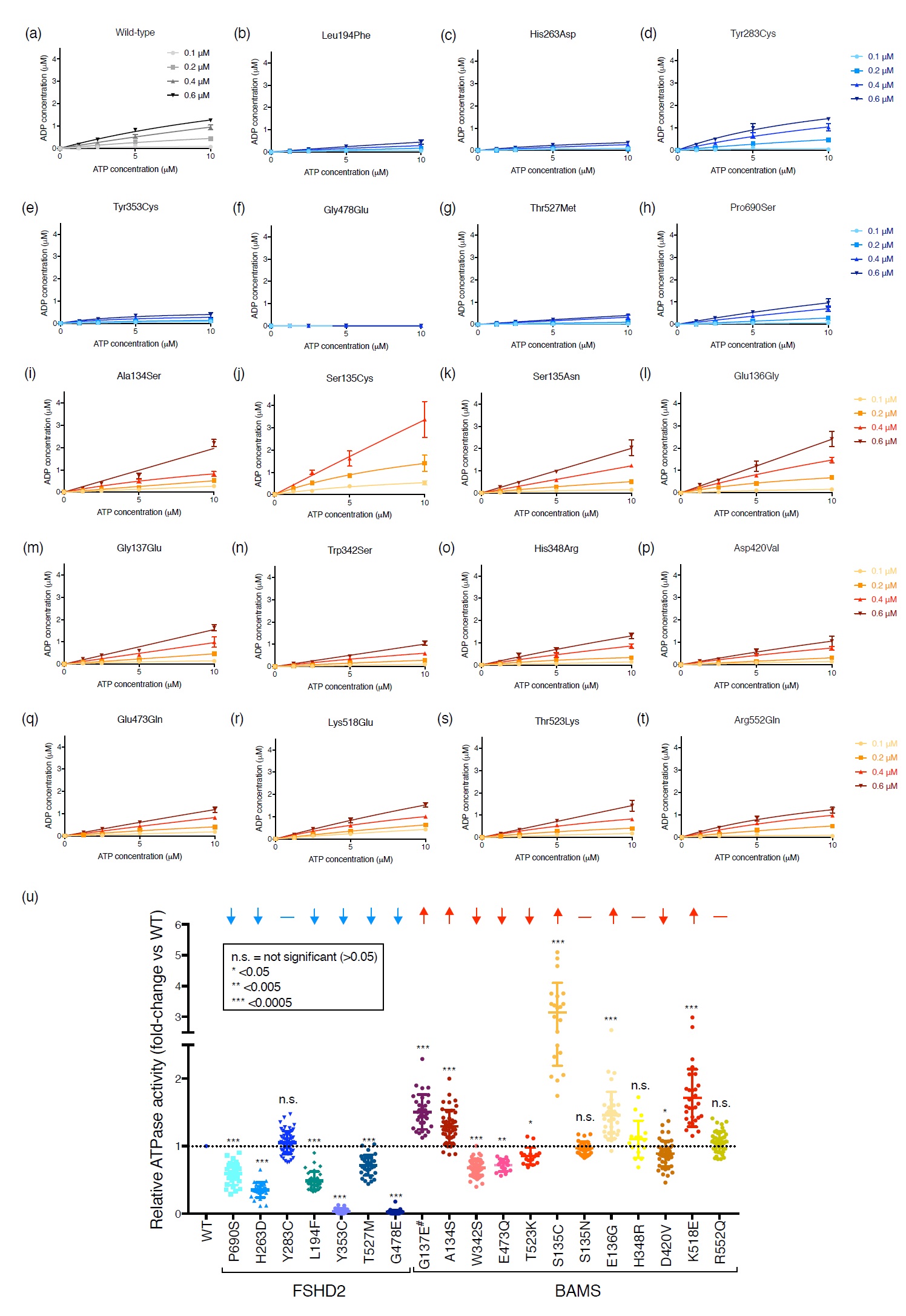 (a-t) ATPase activity analyses of (b-h) FSHD2- and (i-t) BAMS-associated mutants, alongside (a)