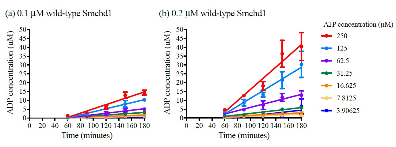 representative WT-protein activity. Each graph indicates ATP concentration (x-axis, μM), concentration of
