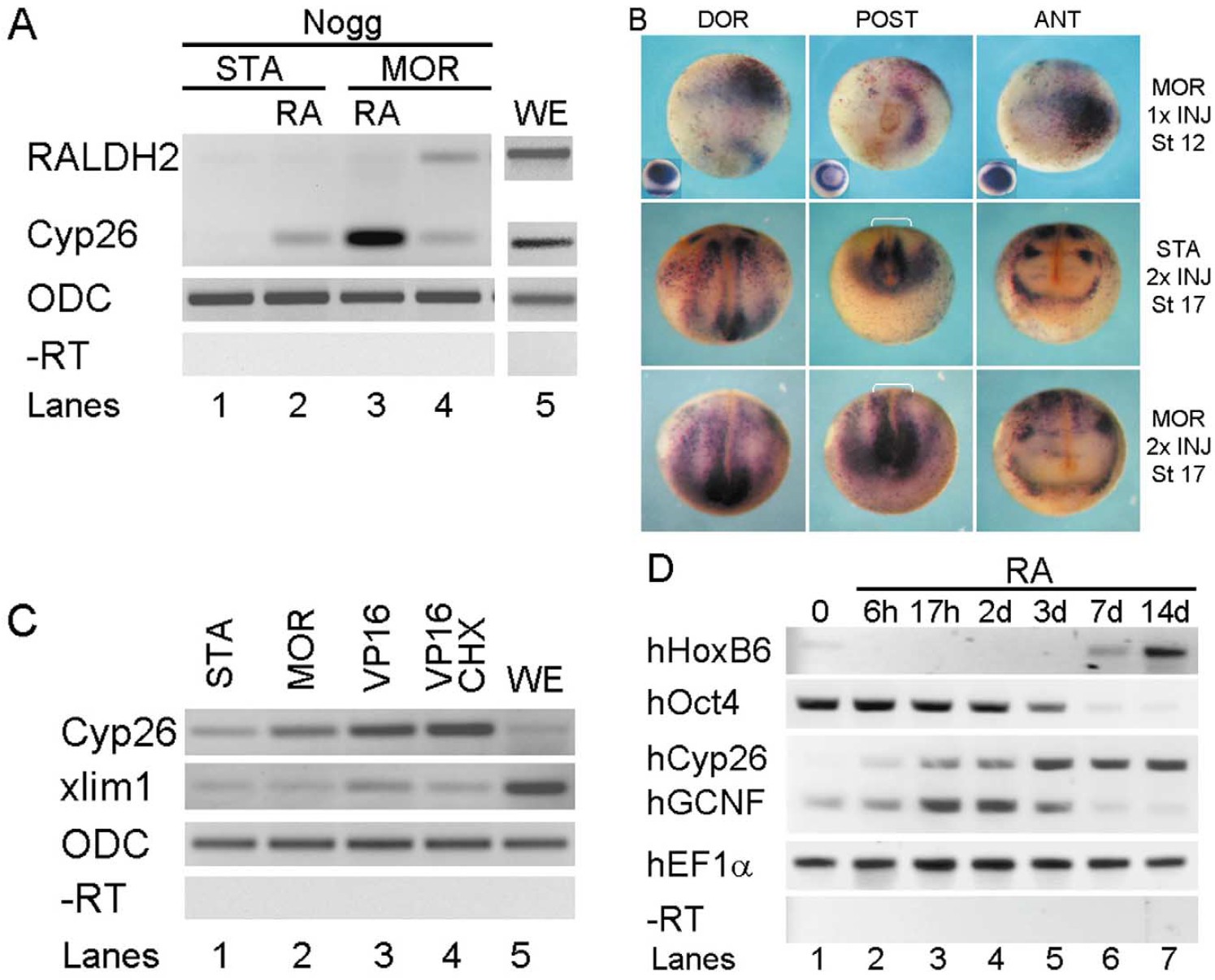 experimental strategy was as outlined in Fig. 3A. Loading control ODC RT, negative control ODC 2 RT, whole embryo WE. (B) Detection of CYP26