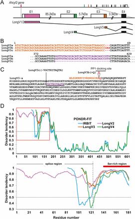 Long-IRBIT splice variants and structural disorder of IRBIT family. (A) Schematic illustration of Ahcyl2 gene structure and Long-IRBIT splice variants. (B) Schematic illustration of DNA sequences for 5′ CDS region of LongV3 splice variants cloned from mouse brain cDNA. (C) Schematic illustration of amino acid sequences for LongV3 splice variants. (D) In silico prediction for intrinsically disordered regions of IRBIT family. Amino acid sequences of IRBIT and Long-IRBIT splice variants were analyzed by metaprotein disorder prediction program PONDR-FIT (19). (Upper) Whole sequences of IRBIT family. (Lower) N-terminal regions of IRBIT family indicated by a red box above. |