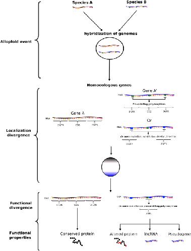 Figure 8. Scheme proposing altered gene function development based on species hybridization followed by asymmetric localization and modification of coding sequence.
