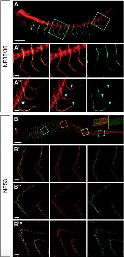 Fig. 2. Early steps of NMJ development in X. tropicalis embryos.