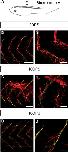 (A) Scheme of the SCI procedure in NF50 X. laevis embryos, where the skin, superficial muscles and the spinal cord were injured (total transection, red asterisk). Injured larvae were collected 2 (A), 10 (B) and 18 (C) days post transection (DPT), immunostained to reveal neurons (using 3A10 plus SV2 antibodies, red) along with staining of AChR aggregates with BTX (green), and imaged by confocal microscopy. Asterisks in B, C and D label the transection site. In B (2DPT embryos), magnified images of the regions labelled with cyan (rostral to the SCI site), yellow (immediately caudal from the SCI site), and purple (more caudal to the SCI site) squares are shown in B', B'', and B''', respectively. Arrowheads in B'' show denervated AChR aggregates. In C (10DPT), magnified images of the regions labelled with cyan (rostral to the SCI site) and yellow (immediately caudal from the SCI site) squares are shown in C' and C'', respectively. In C (18DPT), magnified images of the regions labelled with yellow (immediately caudal from the SCI site) and purple (more caudal from the SCI site) squares are shown in D' and D", respectively. Arrows in C'', D' and D" indicate axonal branching. Orientation of embryos: anterior (left), posterior (right), dorsal (up), ventral (down). Scale bars: 500â¯Î¼m (A); 200â¯Î¼m (BâC); 30â¯Î¼m (A'''); 50â¯Î¼m (B',B'',C',C''); 10â¯Î¼m (A',A"). |