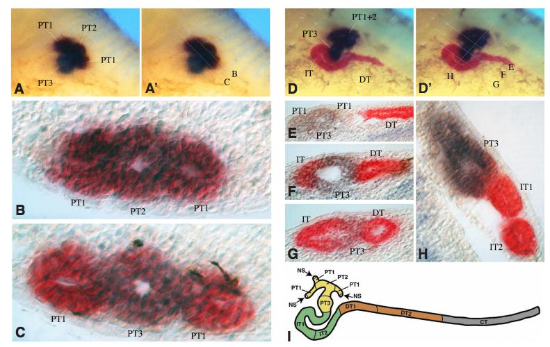 intermediate tubule (IT), nephrostomy (NS) and pronephric tubule (PT). |