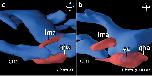 3D-reconstructions based on confocal laser scanning microscopy of specimen stained with antibodies showing the effects of bapx1 upregulation on cranial muscle morphology in Xenopus laevis larvae. Lateral view of the jaw articulation and selected muscles of ZO 17 larvae. a Muscle morphology in a control specimen. b Muscle morphology in a specimen after bapx1 upregulation. The m. levator mandibulae articularis originates more anteriorly on the dorsal surface of the processus muscularis than in control specimens. The m. quadratohyoangularis surrounds the ectopic cartilage without originating from or inserting onto this cartilage. cm, Meckel’s cartilage; ec, ectopic cartilage; lma, M. levator mandibulae articularis; qha, M. quadratohyoangularis |