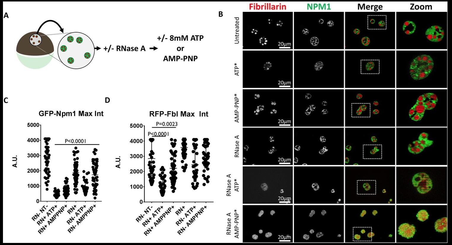 Dual roles for ATP in the regulation of phase separated protein aggregates in Xenopus oocyte nucleoli.