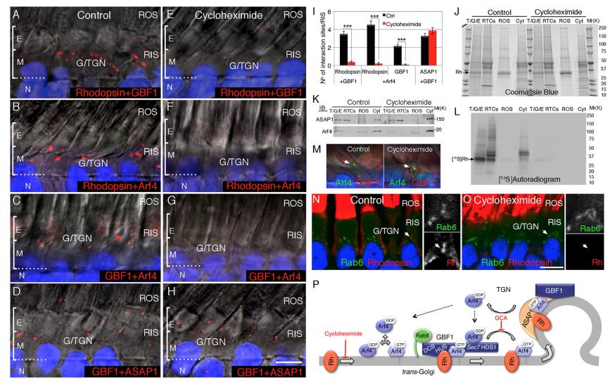 The Arf GEF GBF1 and Arf4 synergize with the sensory receptor cargo, rhodopsin, to regulate ciliary membrane trafficking.