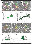 Figure 3. Polarized apical junction dynamics facilitate mediolateral cell intercalations. (A) Confocal images of junction dynamics in the Xenopus neural plate epithelium labeled with membraneGFP. Magenta lines mark the shrinking of a V-junction during a T transition; after complete shrinkage mediolaterally (T1-T2) (a’), a new junction (cyan) elongates perpendicularly along the AP axis (T2-T3) (a’’). Scale = approx. 20 mm. (B) Graph showing the mean change (±s.d.) in junction length for V- and T-junctions. (C) Plot of the average angles of junctions over 1800 s against the change in junction length. Each dot represents on cell-cell junction. n = 267 junctions from three embryos across three different experiments. (D) The simultaneous mediolateral shrinking of two neighboring v- junctions (magenta) leads to formation of a multicellular rosette (d’), and new junctions (cyan) that emerge from the resolving rosette are oriented along the AP axis (d’’). Scale = approx. 20 mm. (E) Rose diagram plotting the orientation of shrinking junctions that lead to the formation of multicellular rosettes and the mean resultant vector (arrow). n = 42 junctions from four embryos across three separate experiments. (F) Rose diagram plotting the orientation of new junctions emerging from resolving rosettes and mean resultant vector (arrow). n = 36 new junctions from 3 embryos across three separate experiments. DOI: https://doi.org/10.7554/eLife.36456.011 |