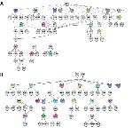 Figure 9. Transcription factor networks for the comparison of NF10.5 vs NF24 based on Mogrify. The top 15 TFs from each list (Supplementary Table S10) have been plotted for comparison. Each TF coming from our dataset appears in a coloured circle. The algorithm assembles hubs connecting all the factors using interactions deposited in the STRING database (in gray). The thickness of connecting lines is indicative of the strength of the known interaction. (A) Hubs derived from neg_rank list, naming factors specific for gastrula stage (NF10.5). (B) Hubs derived from pos_rank list, naming factors specific for tailbud stage (NF24). |