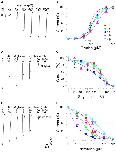 Figure 7. Mutations in zGlyRÃb and zGlyRα1 result in hypomorphic receptors. (A) Location of mutations in zGlyRÃb that give rise to bandoneon (beo) mutants, and analogous position in hGlyRα1 of mutations that cause hyperekplexia. (GBM) Gephyrin-binding motif. (B) Cumulative effects of bandoneon mutations on heteromeric receptorsâ EC50 for glycine and average 10 mM glycine-evoked currents. Of note, oocytes were injected with 1 femtomole of zGlyRα1 cRNA and four femtomoles of zGlyRÃb cRNAs. Ten oocytes were used for each assay. Numbers inside bar here and in (C) represent Hill coefficient, and *p < 0.05, **p < 0.01, and ***p < 0.001. (C) Effect of dominant-negative R271Q mutation on both homomeric and heteromeric receptorsâ EC50 for glycine and average 10 mM glycine-evoked currents. Each oocyte was injected with 2.5 femtomoles of venus-tagged zGlyRα1 cRNAs and 2.5 femtomoles of zGlyRÃb cRNA. Ten oocytes were used for each assay. (D) Confocal images of HEK293T cells expressing venus-tagged zGlyRα1 subunits.