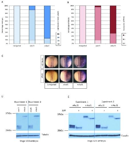 C) Two cell stage embryos were unilaterally injected with 100pg of mRNA encoding either xAscl1 or mAscl1. At stage 18, embryos were assayed by