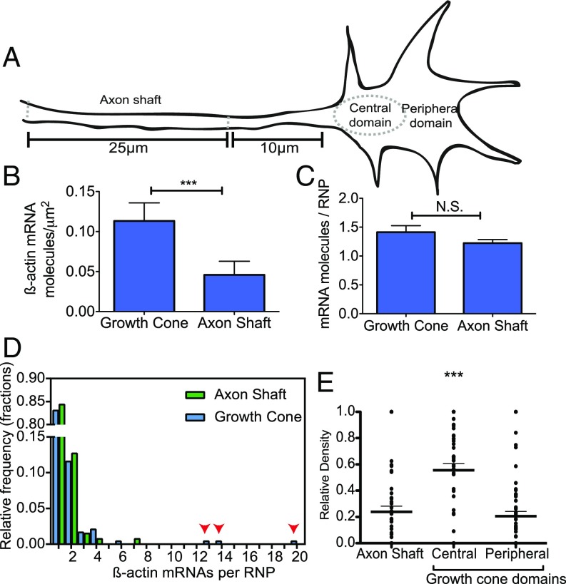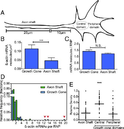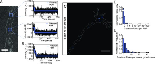 Single-molecule analysis of endogenous β-actin mRNA trafficking reveals a mechanism for compartmentalized mRNA localization in axons.
