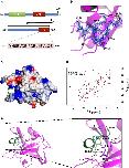 Figure 2. PrimPol possesses a second RBM that also binds to the basic cleft of RPA70N.(a) The sequence of PrimPol's RBM-B (residues 542â560), located in the C-terminal RBD (residues 480â560). (b) The continuous electron density of RBM-B residues 548â556 in the complex with RPA70N. (c) Electrostatic surface model of RPA70N with RBM-B (green) bound in the basic cleft. Basic and acidic surfaces are coloured blue and red, respectively. (d) 15N-1H HSQC spectra showing RPA70N in the absence (black) or presence (red) of a twofold molar excess of unlabelled RBM-B peptide. (e) Key stabilizing interactions of RBM-B (green) in the RPA70N basic cleft (purple). RBM-B binds between β sheets in the β barrel of RPA70N. D551 is of particular importance as it forms a number of electrostatic interactions with both the side chains and a backbone amide NH of the RPA70N peptide. |
