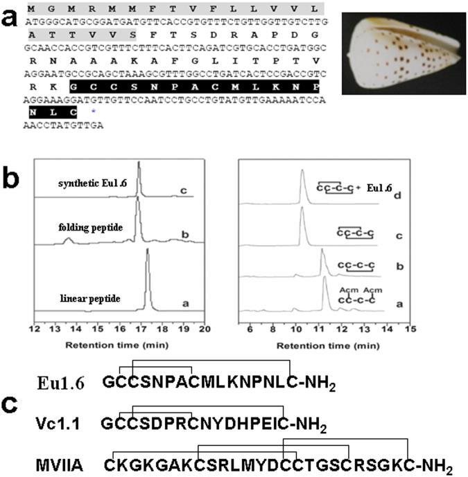 A novel α-conopeptide Eu1.6 inhibits N-type (CaV2.2) calcium channels and exhibits potent analgesic activity.