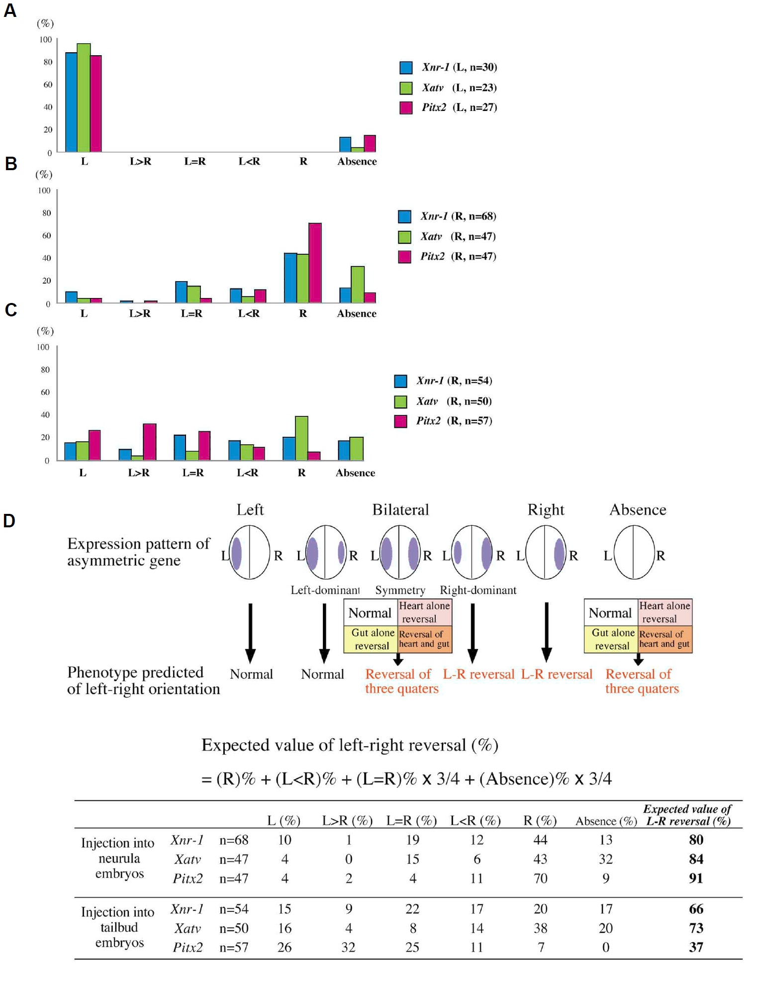 of Xnr-1, Xatv and Pitx2, respectively. L, expression