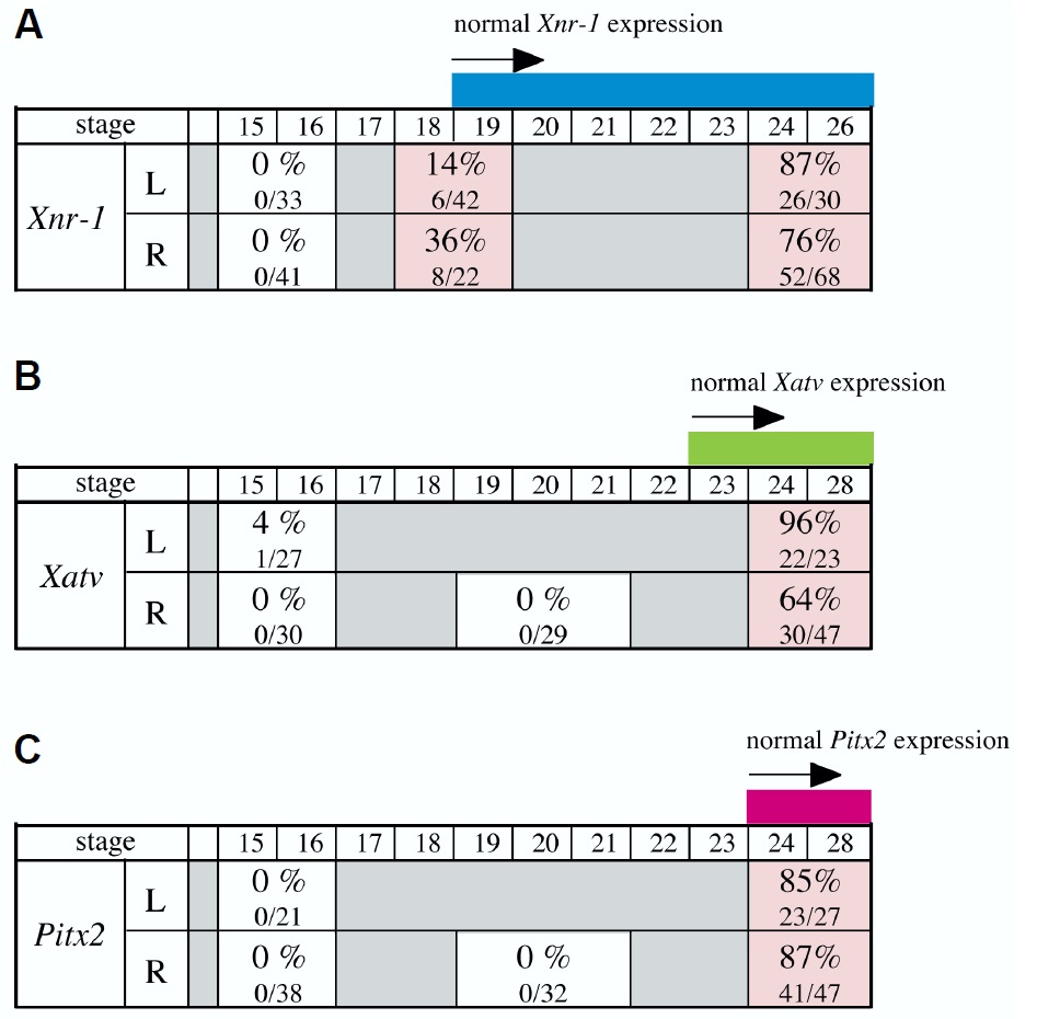 of Xnr-1, the embryo ceases left-handed Pitx2 expression (C, viewed from