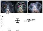 Figure 6. HCN2 channels restore the brain size relation to anterior head shape in nicotine-exposed embryos. Morphometrics canonical variate analysis of brain size relation to anterior head shape of stage 45 tadpoles. a) Graphical output, showing confidence ellipses for means, at a 0.95 probability, of shape data from controls and nicotine-exposed (0.1âmg/mL â stage 10â35) tadpoles with or without Hcn2-WT mRNA (0.75 ng/injection) microinjected in both blastomeres at 2-cell stage. Ellipses are colored to correspond with treatment as indicated. Nâ>â26 for each group. Procrustes distances show objective alteration of brain size in relation to head morphology by nicotine exposure in relation to controls as indicated by the red-blue arrow. Hcn2-WT mRNA microinjection along with nicotine exposure moves the brain sizeâhead shape relation closer to controls as indicated by the blue-green arrow. b) Stage 45 control tadpole image illustrating the 7 landmarks considered for this analysis comparing brain size and head shape. Landmarks 2, 3, 4, and 5 show the start of forebrain, transition to midbrain, transition to hindbrain, and end of hindbrain, respectively. Landmarks 1, 6, and 7 indicate the anterior most, and lateral most points of the head shape. c) Canonical variate 1 axis legends (ball and stick diagrams) showing movement of each of the 7 landmarks in mainly anterior-posterior direction. Each ball represents the landmark as indicated by the number and the accompanying stick represents the direction and extent of movement of that particular landmark. d) Canonical variate 2 axis legends (ball and stick diagrams) showing movement of each of the 7 landmarks in mainly lateral direction. Each ball represents the landmark as indicated by the number and the accompanying stick represents the direction and extent of movement of that particular landmark |
