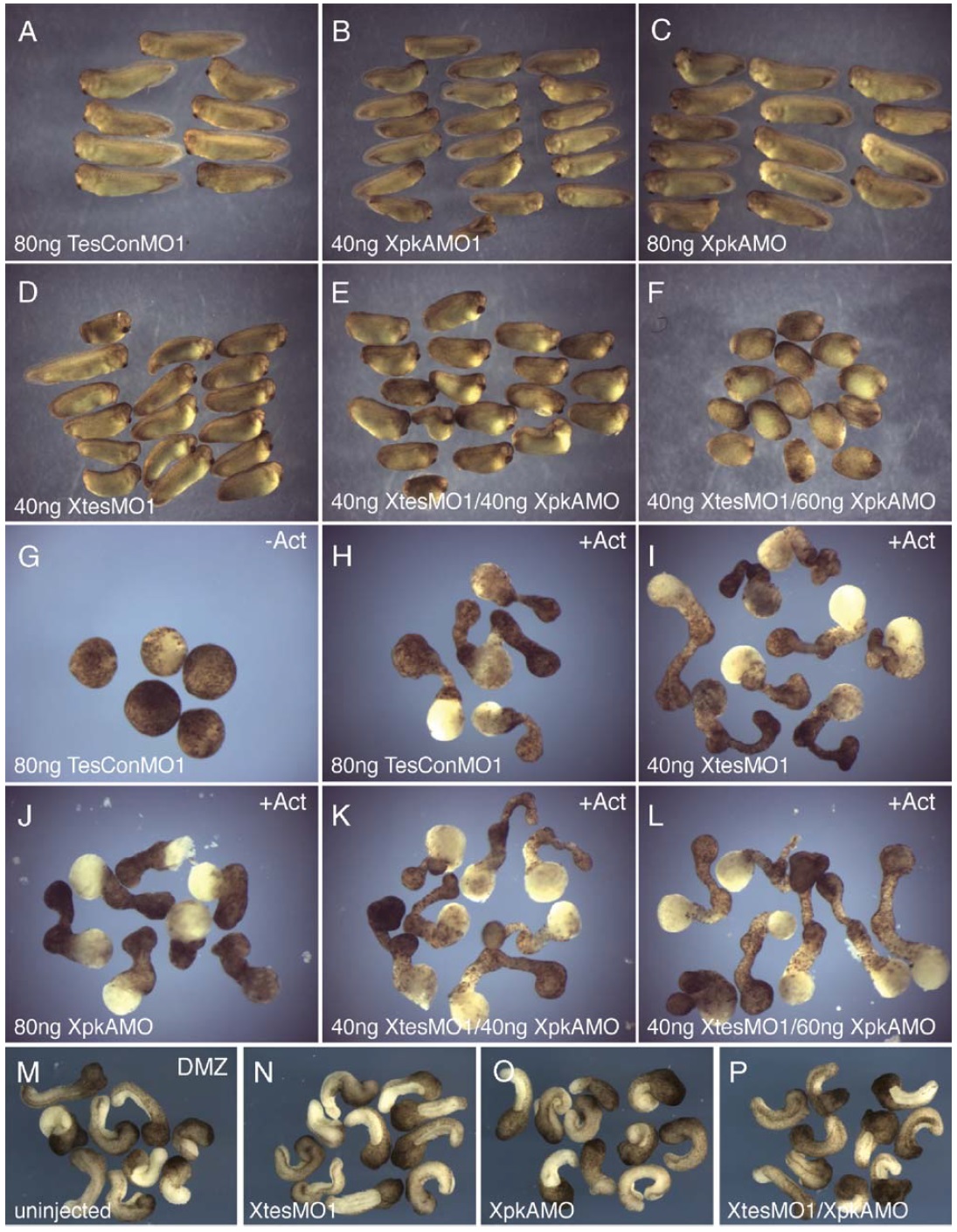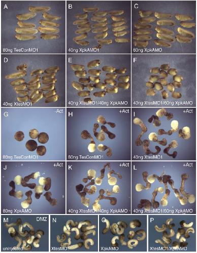 ConMO1, (I) 40 ng Xtes MO1, (J) 80 ng XpkA MO, (K) 40 ng Xtes MO1/40 ng XpkA MO and (L) 40 ng Xtes MO1/60 ng XpkA MO. (MâP) Combined depletion of