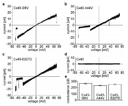 Bukauskas, Gating properties of gap junction channels assembled from connexin43 and connexin43 fused with green fluorescent protein. 2001, Pubmed