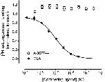 Fig. 2. Competition radioligand binding. Equilibrium radioligand binding was performed with [3H]-α-BTX (1 nM) in human kidney tsA201 cells expressing α7 nAChRs. A-867744 (3 nM to 30 μM) caused no significant displacement of [3H]-α-BTX binding, whereas the orthosteric antagonist MLA caused complete displacement of specific radioligand binding. Data points are means of triplicate samples (±S.E.M.) from a single experiment, and data are typical of three independent experiments. |