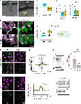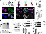 Fig. 9. Nuclear localization of Cx43-20k and N-cad expression is BTF3 dependent in HeLa cells. a, b siRNA efficiency. HeLa cells were transfected with siRNA control (siCTL) and siRNA against BTF3 (siBTF3). siBTF3 leads to an efficient reduction in Btf3 mRNA as analyzed by qPCR (a) (Nâ=â4) and BTF3 protein as analyzed by western blot (b) (Nâ=â4). c, d Cx43-20k nuclear localization. c siBTF3 leads to a strong reduction in Cx43-20k nuclear localization, compared with siCTL (Nâ=â3). d No difference between siCTL and siBTF3 was observed in cells transfected with a control GFP vector (Nâ=â3). Scale barâ=â20âμm. e, f N-cadherin expression. siBTF3 leads to a strong reduction of the n-cadherin mRNA (Nâ=â4) (e) and protein levels (Nâ=â4) (f) induced by Cx43-20k-GFP, as indicated by qPCR and western blot analyses. Histograms in a, b, e, and f represent meanâ±âS.E. (one-way ANOVA for e p***â<â0.001, two-tailed t- test p**â<â0.01, p***â<â0.001, p****â<â0.0001). N number of independent experiments; n sample size. Spread of data in bar charts is shown as overlying dots. n.s. nonsignificant |