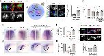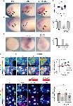 Fig. 5. Cx43-20âkDa isoform is generated from Internal Ribosome Entry Site (IRES). a twist ISH lcompared with Cx43 immunostaining in stage 24 embryos; IgG control antibody; arrow: neural crest; asterisk: eye. Drawing: Cx43 and twist expression summary. Scale barâ=â80âμm. b Cx43-20k protein levels (analyzed by WB) and N-cadherin mRNA (analyzed by qPCR) in st23 NC cells (nâ=â61 embryos, Nâ=â3). câh Cx43 putative IRES and activity of Cx43 isoforms. c Predicted methionine-initiated polypeptide. Green: constructs used in e. Red arrows: abundant peptides found in Xenopus; gray arrows: less abundant or absent peptides in Xenopus. d WB of embryos at NC migratory stages with antibody against the Cx43 C-terminus. Major bands correspond to Cx43FL and Cx43-20k (arrows). e WB of neural crest expressing the Cx43-20k-HA with an antibody against HA. The only band generated corresponds to the M276-initiated peptide (Cx43-20k). f Injection of Cx43-20k, but not Cx43-11k, leads to induction of N-cadherin expression in blastula embryos; percentage of embryos displaying N-cadherin expression, (nCx43-11kâ=â20 embryos nCx43-20kâ=â20 embryos, Nâ=â3). Scale barâ=â70âμm. g WB against Cx43 from embryos at st21 injected with Cx43-HA (lane 1) and with Cx43 mutated in methionine 213 (M213L Cx43, lane 2). h WBâs quantification (nlane1â=â20 embryos nlane2â=â20 embryos, Nâ=â4). i WB of st22 neural crest cells with antibody against the Cx43 C terminus. Lane1: control neural crest; lane 2: neural crest injected with Hif-1α morpholinos; lane 3: neural crest expressing a dominant active form of Hif-1α. j Quantification of Cx43 isoforms (ncontrolâ=â50; nHif-1αMOâ=â50; nHif-1αÎâ=â50 neural crests, Nâ=â6 independent experiments). Hif-1αMO and Hif-1αΠwere previously validated25. In f, h, and j histograms represent mean and bars show s.e.m. (in j one-way ANOVA pâ<â0.001, two-tailed t test, p**â<â0.01, p***â<â0.001, p****â<â0.0001). N number of independent experiments; n sample size. Spread of data in bar charts is shown as overlying dots |