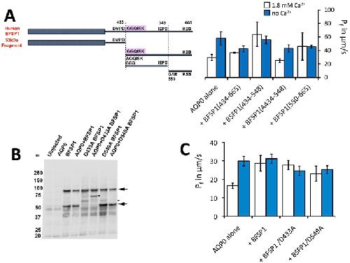 BFSP1 C-terminal domains released by post-translational processing events can alter significantly the calcium regulation of AQP0 water permeability.