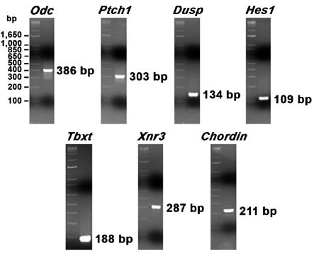 Genes referenced: chrd dpagt1 dusp6 dvl2 fzd5 hes1 lrp6 nagk nodal nodal3 nodal3.2 notch1 odc1 pgm3 psmd6 ptch1 shh tbxt uap1 wnt8a