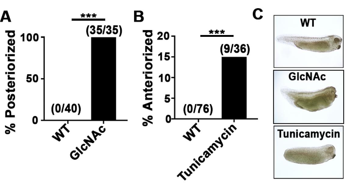 In a screen for human kinases that regulate Xenopus laevis embryogenesis, we identified Nagk and other components of the UDP-GlcNAc glycosylation salvage pathway as regulators of anteroposterior patterning and Wnt signaling. We find that the salvage pathway does not affect other major embryonic signaling pathways (Fgf, TGFβ, Notch, or Shh), thereby demonstrating specificity for Wnt signaling. We show that the role of the salvage pathway in Wnt signaling is evolutionarily conserved in zebrafish and Drosophila. Finally, we show that GlcNAc is essential for the growth of intestinal enteroids, which are highly dependent on Wnt signaling for growth and maintenance. We propose that the Wnt pathway is sensitive to alterations in the glycosylation state of a cell and acts as a nutritional sensor in order to couple growth/proliferation with its metabolic status. We also propose that the clinical manifestations observed in congenital disorders of glycosylation (CDG) in humans may be due, in part, to their effects on Wnt signaling during development.