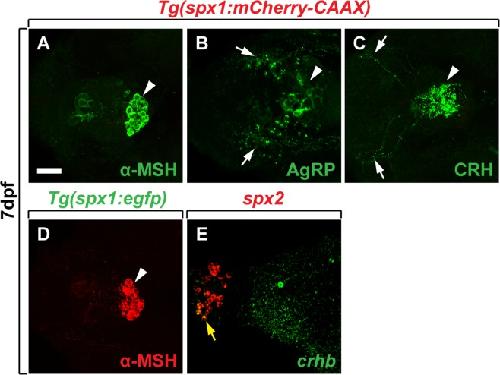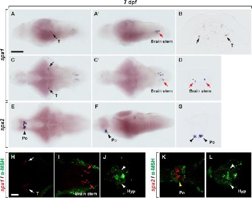 Genes referenced: agrp gal galr2 galr3 lgals4.2 pax2 pomc sf3b4 slc6a5 spx