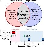 Figure 7. Xenopus laevis cardiac repair shares elements of the mammalian stress response and the urodele/fish regenerative response. (a) The cardiac response of X. laevis tadpoles to oxidative stress shares elements with the stereotyped cardiac regeneration response, but each pathway also contains unique mechanisms not shared by the other. (b) The X. laevis cardiac repair response can be divided into two phases, a stress phase dominated by ventricular hypertrophy and upregulation of Hsp70, and a repair‐like phase dominated by re‐expression of cardiac development genes and cardiomyocyte proliferation