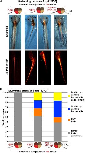 Fig 3. Differential levels of nuclear import factors in the two halves of an early embryo lead to bent tadpoles.