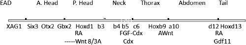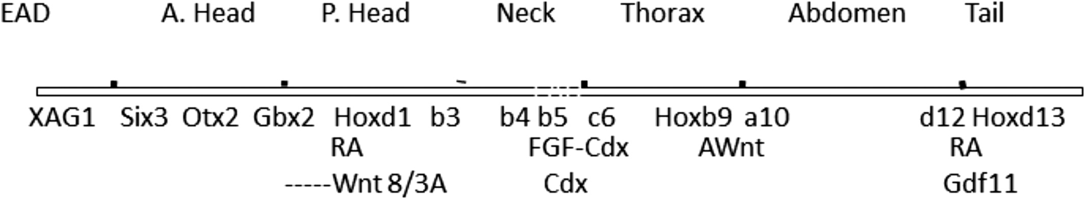 Durston, What are the roles of retinoids, other morphogens, and Hox genes in setting up the vertebrate body axis? 2019, Pubmed , Xenbase