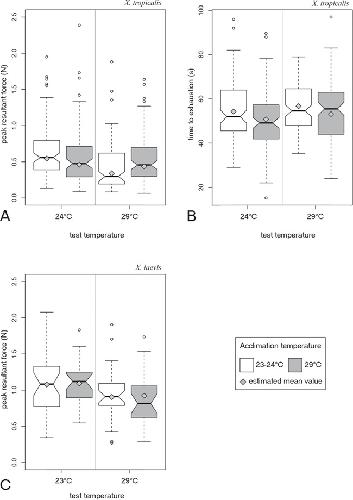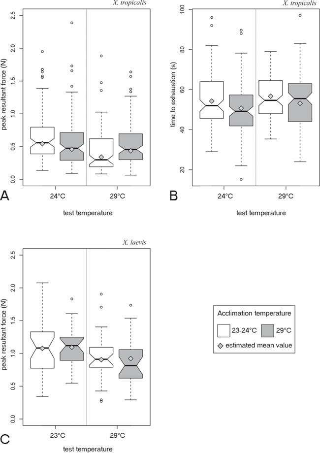 Acclimation temperature effects on locomotor traits in adult aquatic anurans (X. tropicalis and X. laevis) from different latitudes: possible implications for climate change.