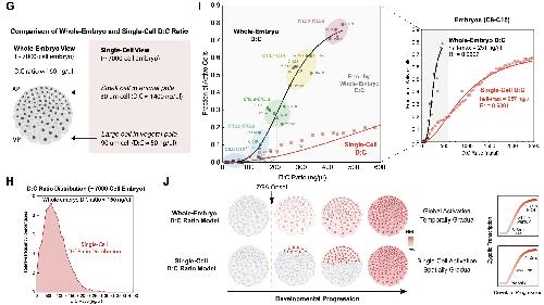 (G) Schematic of comparison of whole-embryo D:C ratio and single-cell D:C ratio in a ~ 7000-cell embryo which is to
