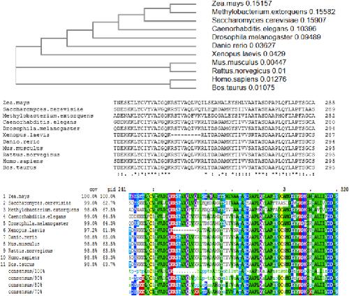 Fig. 2. Cysteine residues in X. laevis ATP-α-F1are evolutionary conserved. Top. Phylogenetic tree of the common model organisms selected. Middle. Multiple sequence alignments of ATP-α-F1 derived from Clustal Omega (an open access online tool: https://www.ebi.ac.uk/Tools/msa/clustalo/). Bottom. Amino acid mark-up showing conserved cysteine residues in yellow. C294 occurs earlier in X. laevis due to a small deletion (see main text). Neighbouring amino acids surrounding C244 and C294 are highly conserved across phyla. (For interpretation of the references to colour in this figure legend, the reader is referred to the Web version of this article.)