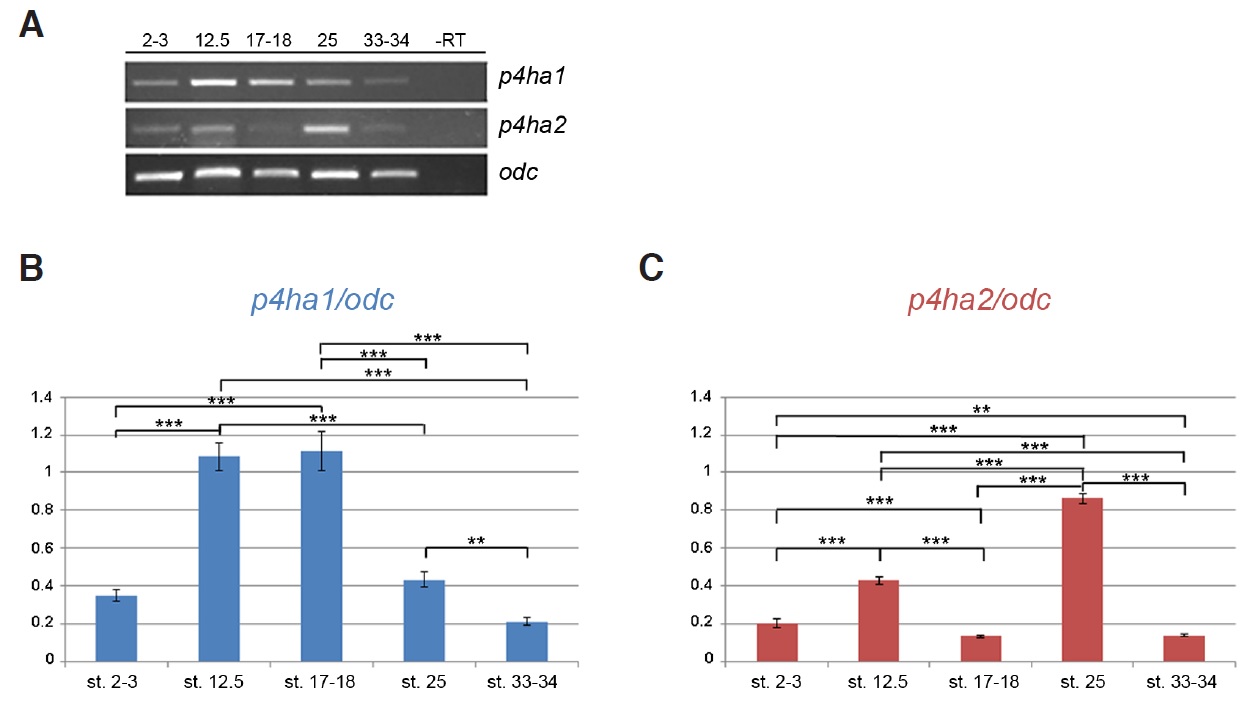 Fig. 1. RT-PCR analysis of p4ha1 and p4ha2 expression during