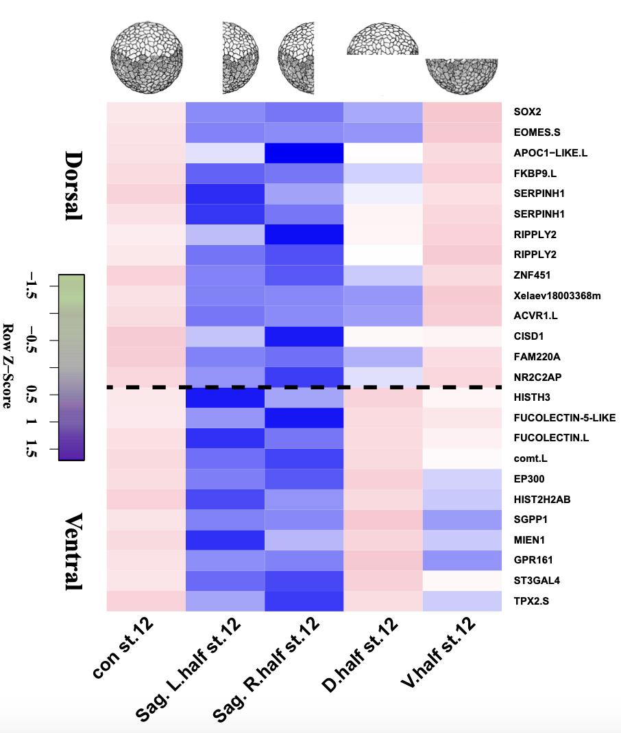Fig. 2 Heatmap of genes up-regulated by sagittal bisection in regenerating stage 12 late gastrula