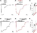 Figure 2. GluN2AN615K reduces ketamine block but increases dextromethorphan block. A and B, Representative two‐electrode voltage‐clamp recordings made from oocytes expressing GluN2AWT or GluN2AN615K–containing NMDA receptors showing response to glutamate (30 μmol/L) and inhibition by ketamine (10 μmol/L) in the continuous presence of glycine (30 μmol/L). Holding potential –60 mV. C, Summary data showing percentage inhibition by ketamine (10 μmol/L) for oocytes transfected with either GluN2AWT or GluN2AN615K –containing NMDA receptors, voltage‐clamped at –60 mV. An independent Welch t‐test showed that GluN2AN615K was associated with a reduction in block (WT: 79 ± 2 (n = 11 oocytes), N615K: 73 ± 1 (n = 6 oocytes), t